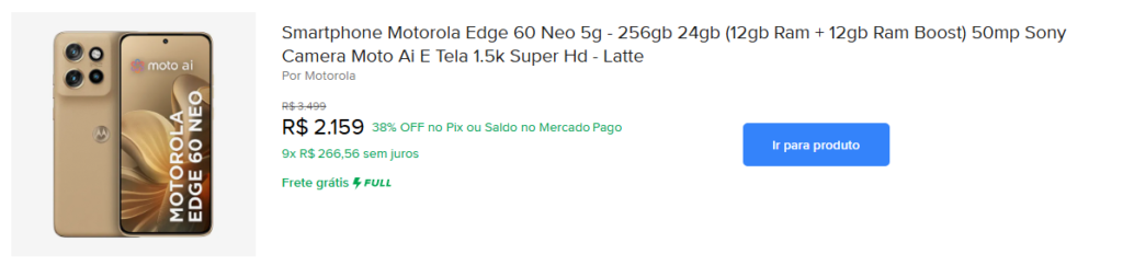 👉 Motorola Edge 60 Neo 256GB no Mercado Livre