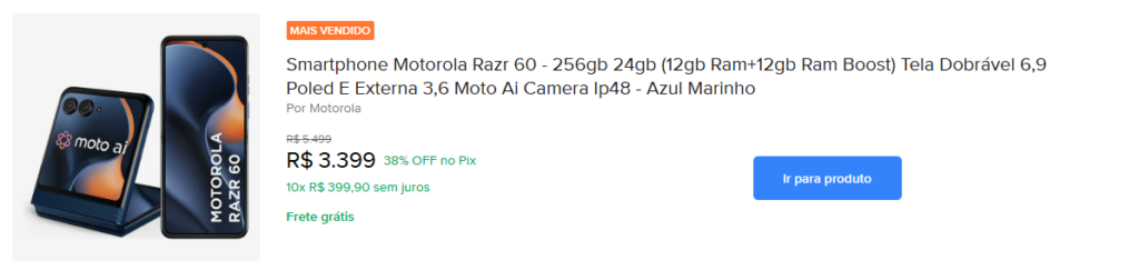 👉 Ver preço e disponibilidade do Motorola Razr 60 no Mercado Livre